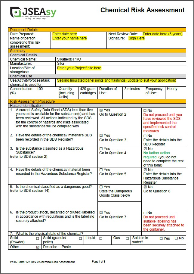- Easily customised to align with your Safety Data Sheets (SDS)